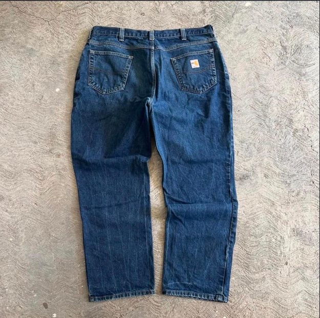 El pantalón incluye bolsillos traseros reforzados, costuras resistentes y el icónico logo Carhartt en el bolsillo trasero, un símbolo reconocido por su calidad y durabilidad. Su color azul oscuro y diseño clásico hacen que también pueda usarse en outfits casuales con un estilo workwear o streetwear.
